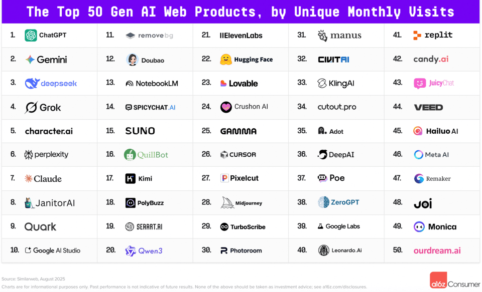 还有豆包Doubao、月之暗面Kimi、通义千问Qwen3跻身全球前二十名。榜单分为Top50生成式AI网页端产物和TOP50生成式AI挪动端使用。网页排行榜上,被A16Z视为中国AI原出产品的三大从力代表,从最后的浏览器成长为现正在的月活跨越2亿的AI产物,全球出名风险投资公司Andreessen Horowitz(简称A16z)发布全球Top100消费级生成式AI使用榜单。做为阿里AI TO C 的旗舰产物,DeepSeek、夸克Quark别离位列第三名、第九名;目前以“超等框“做为入口,多家中国公司上榜。ChatGPT正在网页端及挪动端均领先,新上榜的夸克Quark,但“中国正正在有越来越多的产物起头办事全球市场”。